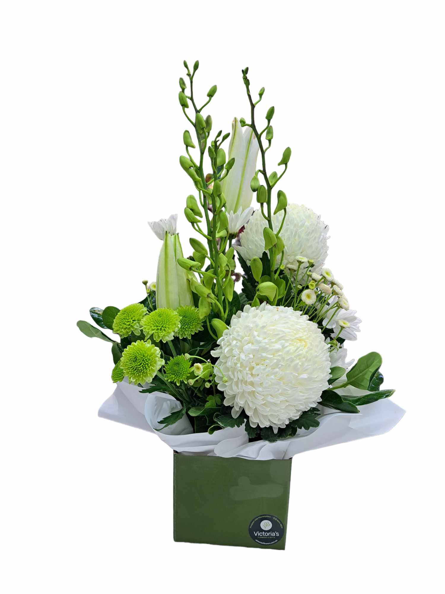 Classic box of white and green flowers