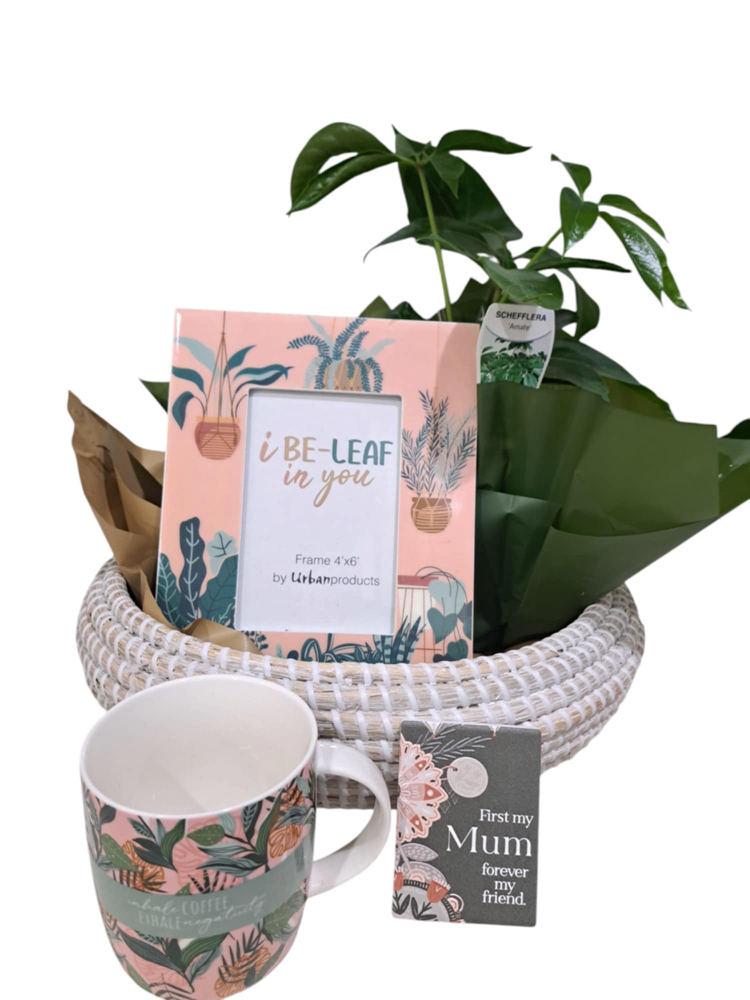 Including Potted Plant, Scented , i be-leaf frame, coffee cup and mum magnet.